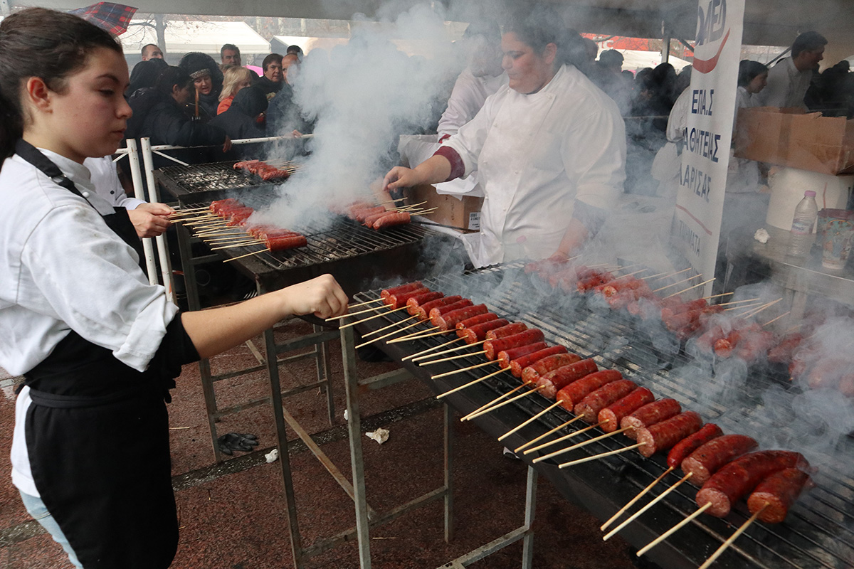 Σε μια απέραντη ψησταριά μεταμορφώθηκε η Λάρισα ανήμερα της Τσικνοπέμπτης και οι κάτοικοί της γλέντησαν με χορό και τραγούδι.