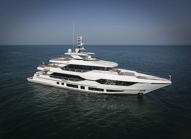 The Majesty 120 accommodates up to 10 guests across five spacious staterooms in a first-of-its-kind asymmetric layout. A total of seven crew can also be accommodated onboard. The Majesty 120 has a confirmed Gross Tonnage of 290 GT and is powered by twin MTU 2,600 hp each. The total length of the superyacht is 37 metres (120’), it has a beam of 8.10 metres (26’) and a draft of 2.00 metres (7’).