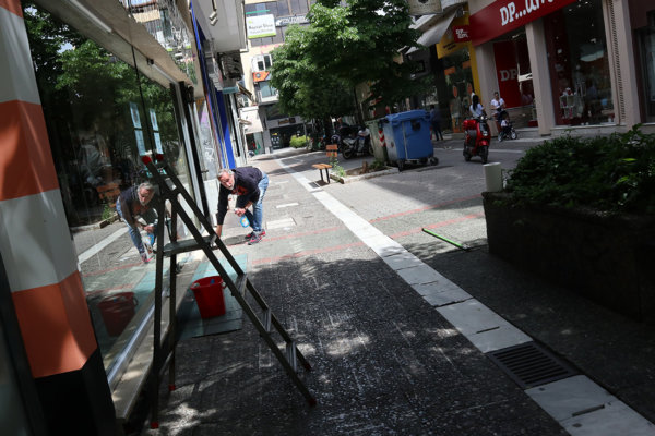 Πυρετωδώς προετοιμάζονται οι καταστηματάρχες στο κέντρο της Λάρισας για την επαναλειτουργία των μαγαζιών τους. Καθαριότητα και διαμόρφωση χώρου είναι στις προτεραιότητές τους.