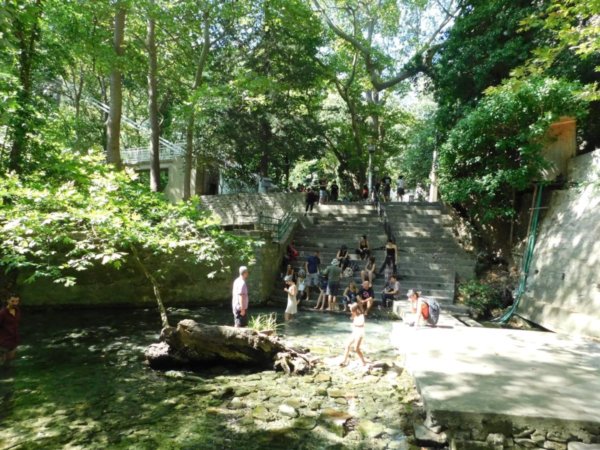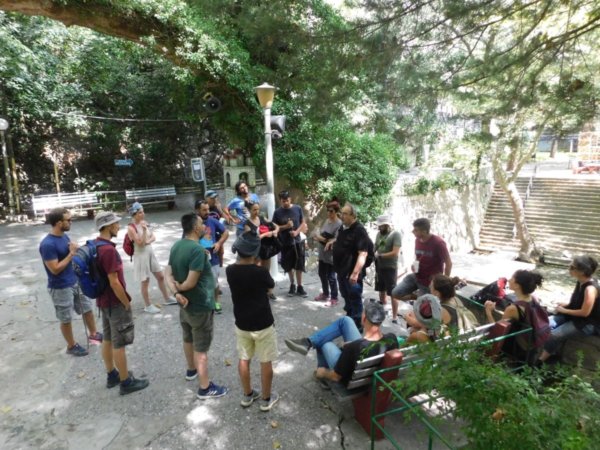 …Η περιήγηση έγινε κάτω από τον καυτό ήλιο και το περπάτημα στα χαλίκια που κούρασε κάποιους συνοδοιπόρους και επέστρεψαν στην αφετηρία. Οι υπόλοιποι 70 περίπου φτάσαμε ως το τέρμα (Αγ. Παρασκευή) και ανακτήσαμε δυνάμεις αφού δροσιστήκαμε στις γάργαρες και κρύες πηγές του Ολύμπου που έρεαν κάτω από τα σκιερά αιωνόβια πλατάνια, πιάνοντας τα πιο δροσερά σημεία … ολοκληρώνοντας έτσι τον ιστορικό περίπατο.