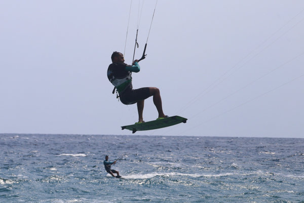 Η «Θάλεια» δεν λέει να φύγει. Ήρθε για να μείνει. Κι αν για κάποιους είναι εμπόδιο για το καλοκαίρι, υπάρχουν κι εκείνοι που το εκμεταλλεύονται. Πιάνουν το καιρικό φαινόμενο από τα μαλλιά και σηκώνονται στον αέρα. Σηκώνονται στην σανίδα τους και το θέαμα που προσφέρουν είναι μοναδικό. Σπάνιο για την περιοχή.