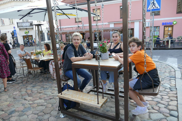 Αποφασίζουμε να πάρουμε ένα Uber για να ανεβούμε ψηλά, στο λόφο με τους τρεις σταυρούς, ώστε να δούμε την πόλη από ψηλά. Εδώ φαίνεται να λειτουργεί καλύτερα η Uber. Σε 5′ το αυτοκίνητο έχει έρθει και με κόστος 1,90€ μας ανεβάζει στο λόφο. Από εκεί που μας αφήνει περπατάμε το υπόλοιπο μέχρι το τέρμα και τους τρεις λευκούς σταυρούς. Η θέα της πόλης είναι μαγευτική! Υπάρχει και χάρτης που σου δείχνει που βρίσκονται τα σημαντικά αξιοθέατα της πόλης. Χορταίνουμε τη θέα και κατεβαίνουμε περπατώντας μέσα στο δάσος, προς την μποέμικη περιοχή του Užupis με την σαρκαστική διακήρυξη του συντάγματος της αυτοαποκαλούμενης «Δημοκρατίας του Užupis», που είναι αναρτημένη σε πλάκες στους τοίχους. Οι στενοί δρόμοι είναι γεμάτοι με στούντιο καλλιτεχνών που συνυπάρχουν με μπουτίκ τοπικών σχεδιαστών, μοντέρνες καφετέριες και εστιατόρια από όλον τον κόσμο.