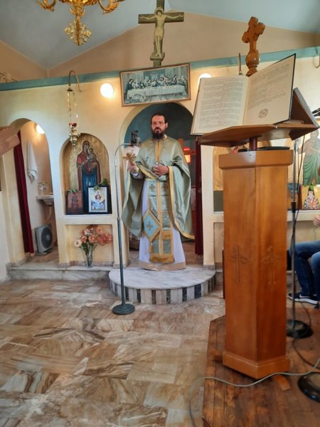 Την κυριώνυμο ημέρα της εορτής 27 Αυγούστου, τελέσθηκε Όρθρος, Θεία Λειτουργία και Αρτοκλασία, λειτουργούντος του Αρχιμανδρίτη π. Δωροθέου, συλλειτουργούντων των ιερέων π. Βασιλείου και του Αρχιμανδρίτη π. Πορφυρίου. Στο κήρυγμά του ο Αρχιμανδρίτης π. Δωρόθεος αναφέρθηκε στον εορταζόμενο Άγιο, και προέτρεψε να μιμηθούμε την υποδειγματική και άμεμπτη ζωή του Αγίου, για να καταξιωθούμε κάποτε κι εμείς να τιμήσουμε το χριστιανικό όνομα που φέρουμε.