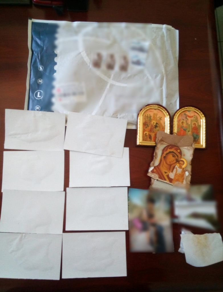 Όπως διαπιστώθηκε οι φωτογραφίες ήταν με διπλή επένδυση και περιείχαν ηρωίνη, συνολικού βάρους 50,3 γραμμαρίων.