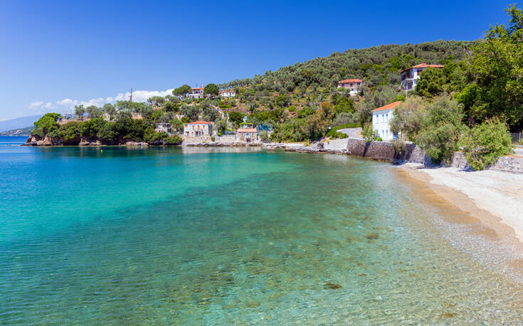 Αυτό που διακρίνουν οι περισσότεροι που επισκέπτονται το χωριό είναι τα γαλαζοπράσινα νερά των γραφικών κολπίσκων γύρω από αυτό, που συνδυάζονται αρμονικά με το πράσινο των ατελείωτων ελαιώνων της περιοχής, δημιουργώντας μια χρωματική παλέτα που μένει ανεξίτηλη στη μνήμη. Στο φυσικό λιμάνι ονόματι Βαλτούδι, θα παρατηρήσει κανείς ιστιοπλοϊκά σκάφη που βρίσκουν ήρεμο αραξοβόλι.