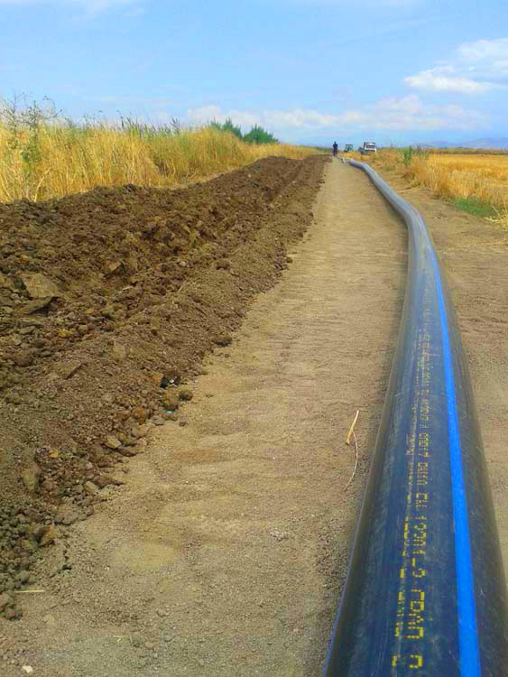 Το έργο προβλέπει την κατασκευή-υπογείωση αγωγών άρδευσης, από PVC 12,5 atm διατομών Φ160-Φ200 συνολικού μήκους περίπου 2.700μ. Οι ανωτέρω διάμετροι και τα μήκη των σωλήνων θα συνδεθούν με επιφανειακό οριζόντιο αντλητικό συγκρότημα, που θα αντλεί νερό από υφιστάμενο αρδευτικό κανάλι. Επίσης, προβλέπεται η προμήθεια και τοποθέτηση των απαραίτητων υδροληψιών διπλού ή ενός στομίου καθώς και οι συσκευές ασφαλείας του δικτύου και ηλεκτρικού πίνακα INVERTER, που αφορά το αντλητικό συγκρότημα, για εξοικονόμηση νερού και ηλεκτρικής ενέργειας, καλύτερη λειτουργία του αντλητικού συγκροτήματος και ασφάλεια αυτού.