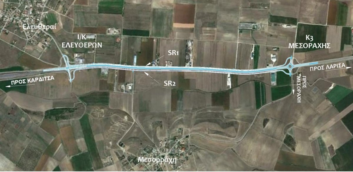 Το έργο αφορά στη βελτίωση του τμήματος της Επαρχιακής Οδού Λάρισας –Καρδίτσας, από τον ισόπεδο κόμβο (Ι/Κ) Μεσοράχης έως τον Ι/Κ Ελευθερών, μήκους 2,15 χλμ.