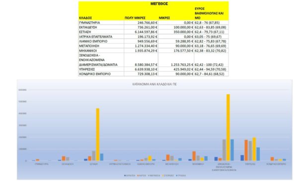 Η χρηματοδότηση από το συγκεκριμένο πρόγραμμα σε ποσοστό άνω του 90% αφορά πολύ μικρές επιχειρήσεις. Για παράδειγμα σε όλη τη Θεσσαλία τα γυμναστήρια παίρνουν 246.000 ευρώ, η εκπαίδευση 736.000 ευρώ, η εστίαση 6.144.000 ευρώ, το λιανικό εμπόριο 950.000 ευρώ, η μεταποίηση 1.274.000 ευρώ., τα τουριστικά καταλύματα και τα ξενοδοχεία 8.500.000, οι υπηρεσίες (λογιστές, υδραυλικοί, δικηγόροι, κλπ.) 6.639.000 ευρώ και το χονδρικό εμπόριο 721.000 ευρώ. εκείνοι που δικαιούνται από τους συγκεκριμένους κλάδους την ενίσχυση είναι εκείνοι που έχουν τη μεγαλύτερη ανάγκη.