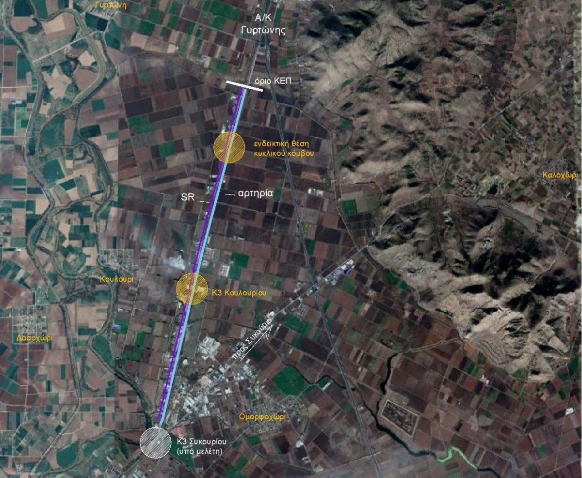 -έναν επιπλέον κυκλικό κόμβο προς Α/Κ Γυρτώνης.