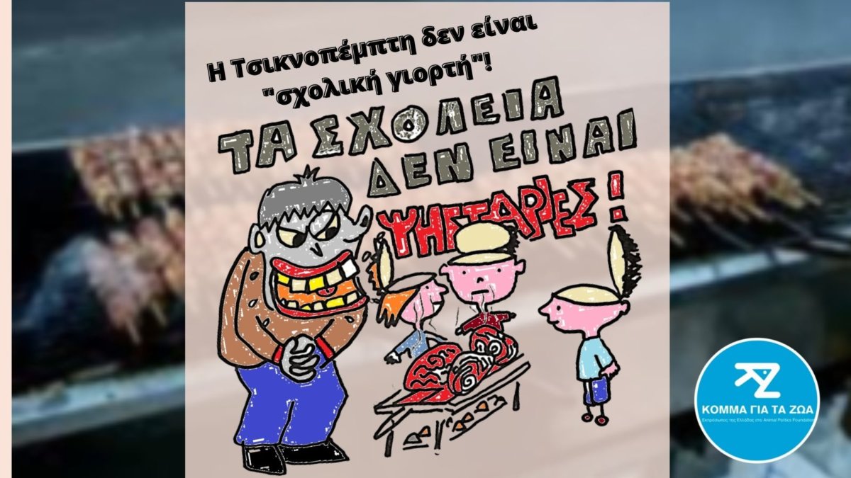 Ανοικτή επιστολή στην κα. Νίκη Κεραμέως έστειλε το Κόμμα για τα Ζώα, με θέμα την μετατροπή των σχολείων μας σε ψησταριές, για τον γιορτασμό της Τσικνοπέμπτης! Οι φιλόζωοι εκτιμούν πως στις εκδηλώσεις αυτές, οι μαθητές «γίνονται ακούσιοι συνδαιτυμόνες σε συστημική κρεατοφαγία». «Αντί να τα προετοιμάζουμε για τη ζωή που θα είναι η δική τους, τα χρησιμοποιούμε σαν κομπάρσους σε αναπαραστάσεις των ευτελέστερων φαντασιώσεων των δικών μας πατεράδων και των παππούδων», καταλήγει το φιλοζωικό κόμμα.