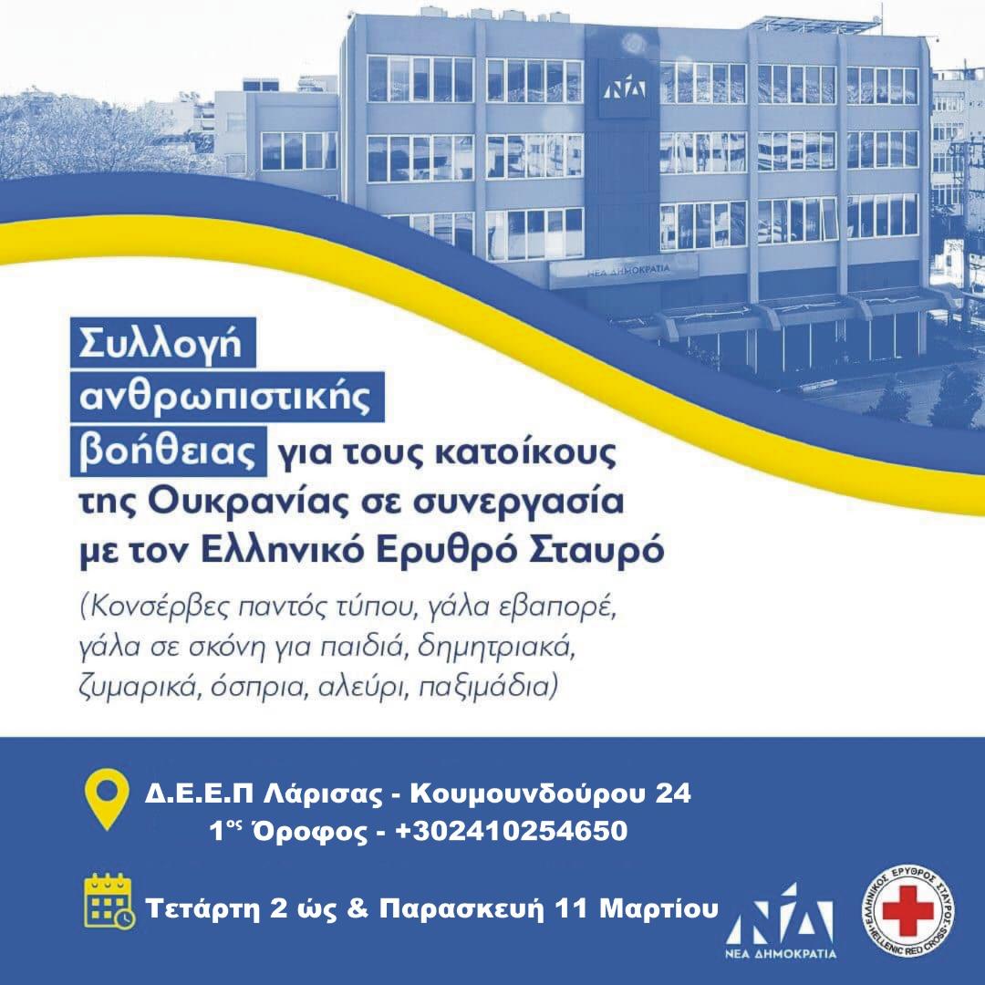 Η ΔΕΕΠ Λάρισας θα υποδέχεται τη βοήθεια στα γραφεία της Κουμουνδούρου 24 στη Λάρισα. Τηλ. 2410 254650.