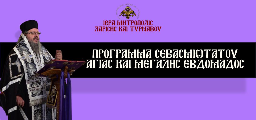 - Μ. Τετάρτη, στις 17:00: Μυστήριο του Ιερού Ευχελαίου στον Ι. Ν. Αγίου Δημητρίου Λαρίσης.
