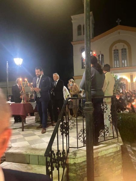 Το ‘Άγιο Φώς, έδωσε στους πιστούς ο Πατέρας Γεώργιος, αλλά και στον δήμαρχο Γιώργο Μανώλη.