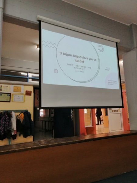 Κατά τη διάρκεια της επίσκεψης έγινε μία σύντομη παρουσίαση του Δημοτικού Συμβουλίου Νεολαίας, έγινε αναφορά στα δικαιώματα του παιδιού και ακολούθησε συζήτηση για το πώς η πόλη της Λάρισας μπορεί να γίνει μία πιο φιλική πόλη για τα παιδιά. Οι μικροί μαθητές έγραψαν σε πολύχρωμες καρτέλες τι θα ήθελαν στην πόλη τους ώστε αυτή να είναι ακόμη πιο φιλόξενη για τα παιδιά.