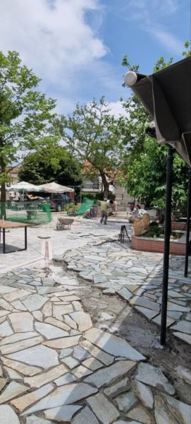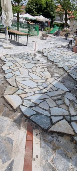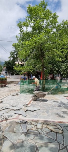 Οι εργασίες που θα πραγματοποιηθούν περιλαμβάνουν επίστρωση με μπιζουταρισμένη ακανόνιστη πλάκα Καρύστου, με κεραμικό πλακάκι, με φιλέτα μαρμάρου και γρανίτη και φυσικά νέες φυτεύσεις δένδρων.