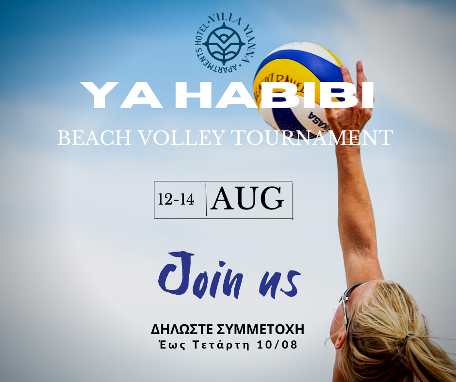 Όπως κάθε χρόνο έτσι και φέτος θα διεξαχθεί το ετήσιο Τουρνουά Beach Volley στην περιοχή Μεσάγγαλα – Καστρί Λουτρό της Παραλίας Αιγάνης από 12-14/08/22.Το τουρνουά είμαι αφιερωμένο στη μνήμη του Ζαφείρη Κωνσταντίνου που το έκανε θεσμό. Δηλώσεις συμμετοχής έως και τις 10 Αυγούστου, στο Beach Bar Αμμούδα / Villa-Yianna.