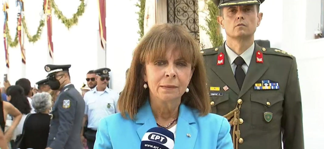 Στη δοξολογία στο Ιερό Προσκύνημα Παναγίας Εκατονταπυλιανής Πάρου παρέστη σήμερα η Πρόεδρος της Δημοκρατίας κυρία Κατερίνα Σακελλαροπουλου. Μετά το πέρας της Θείας Λειτουργίας, η κυρία Σακελλαροπούλου έκανε την ακόλουθη δήλωση: