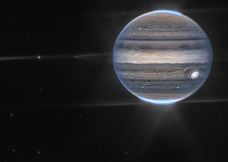 Αμερικανοί αστρονόμοι έδωσαν στη δημοσιότητα νέες εντυπωσιακές φωτογραφίες του Δία, τις πρώτες που τράβηξε το νέο ισχυρό διαστημικό τηλεσκόπιο James Webb από τον μεγαλύτερο πλανήτη του ηλιακού μας συστήματος.