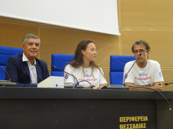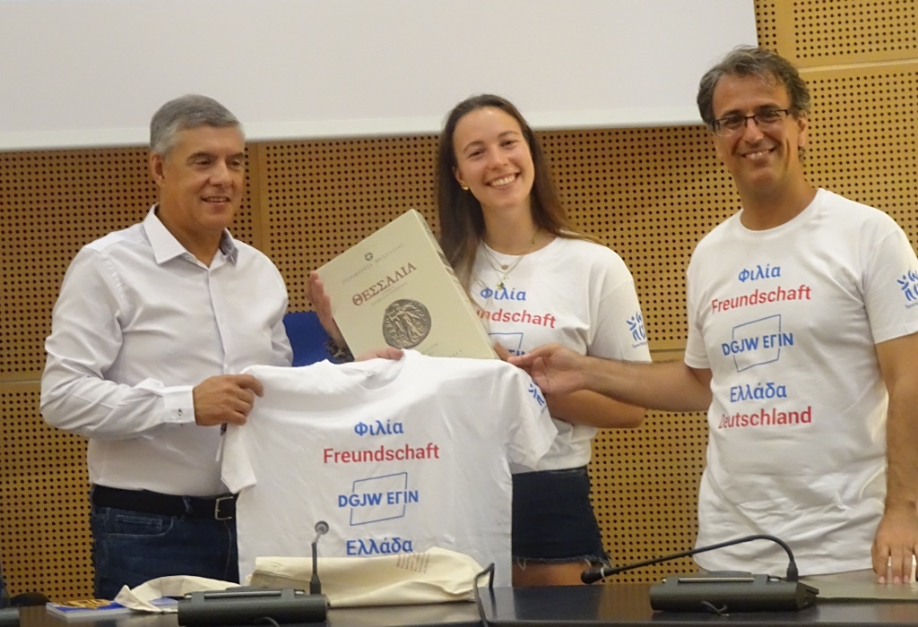 Οι 20 γερμανοί αθλητές, ηλικίας 15-22 ετών, μαζί με τους συνοδούς τους, επισκέπτονται δημοφιλείς τουριστικούς προορισμούς της Θεσσαλίας και συμμετέχουν σε προγράμματα αθλητικών δραστηριοτήτων, μαζί με 20 συναθλητές τους από τα τμήματα μπάσκετ, βόλει και ρυθμικής του Γ.Σ. Ολύμπια Λάρισας. Το πρόγραμμα οργανώνεται από το Ελληνογερμανικό Ίδρυμα Νεολαίας Θεσσαλονίκης και Λειψίας.