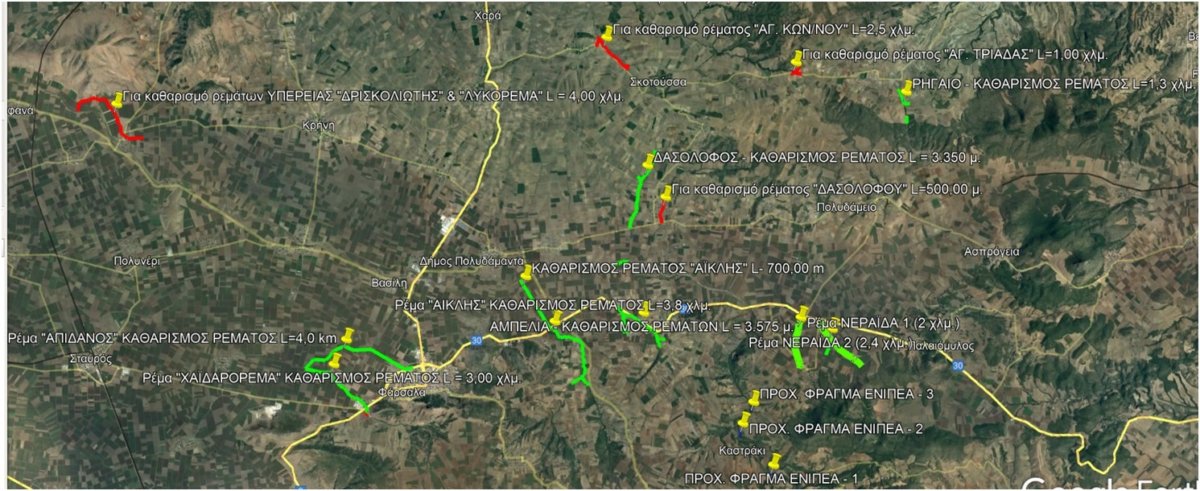 -Μετά τον Ιανό, καθαρισμοί ρεμάτων συνολικού μήκους 16,7 χιλιομέτρων στα εξής σημεία (χάρτης 1):