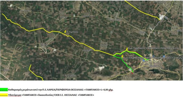 -Στον Ταμπάκο, καθαρισμός ρέματος σε μήκος 4 χλμ. (χάρτης 2), αν και η αρμοδιότητα ανήκει στον ΓΟΕΒ