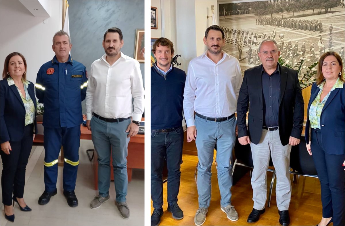 Συναντήσεις με τον Περιφερειακό Διευθυντή της Πυροσβεστικής Υπηρεσίας Θεσσαλίας κ. Βαγγέλη Φαλάρα και τον Περιφερειακό Διευθυντή της Αστυνομίας Θεσσαλίας κ. Αστέριο Μαντζιώκα, είχε εχθές Πέμπτη 22 Σεπτεμβρίου, ο Πρόεδρος του ΣΘΕΒ κ. Γιώργος Ρουπακιάς, συνοδευόμενος από τον Αντιπρόεδρο κ. Γιώργο Καρκανιά και τη Γενική Διευθύντρια κα Έλενα Καματέρη.
