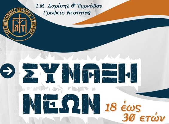 Οι συνάξεις νέων, τόπος διαλόγου, παρέας και ουσιαστικών αναζητήσεων, απευθύνονται σε νέους είτε είναι φοιτητές, είτε είναι εργαζόμενοι, ηλικίας από 18 έως 30 ετών και πραγματοποιούνται με την ευθύνη και το συντονισμό του Σεβασμιωτάτου Μητροπολίτου Λαρίσης και Τυρνάβου κ. Ιερώνυμου. Αναπτύσσονται ενδιαφέροντα θέματα που αφορούν στη νεότητα και τον αγώνα της, γι’ αυτό και προσκαλούνται οι νέοι του τόπου μας σε μια ουσιαστική γνωριμία με την Εκκλησία, την παράδοση της, την πνευματικότητα της, ώστε τελικά στην αρχή της ζωής τους να βάλουν γερά θεμέλια αποκτώντας αρχές και αξίες.