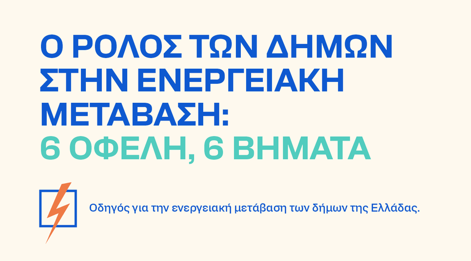 Το ευρωπαϊκό δίκτυο οργανώσεων της κοινωνίας των πολιτών Beyond Fossil Fuels σε συνεργασία με την Electra Energy, το ελληνικό γραφείο της Greenpeace και το WWF Ελλάς, δημοσιεύουν σήμερα έναν νέο οδηγό, ο οποίος περιγράφει τα οφέλη που μπορούν να έχουν οι δήμοι της Ελλάδας από τη συμβολή τους στην ενεργειακή μετάβαση της επικράτειάς τους. Ο οδηγός προτείνει συγκεκριμένα πρακτικά βήματα που μπορούν να κάνουν για την ενεργή συμμετοχή τους στην ενεργειακή μετάβαση, διανέμοντας τα οφέλη της στην τοπική κοινωνία.