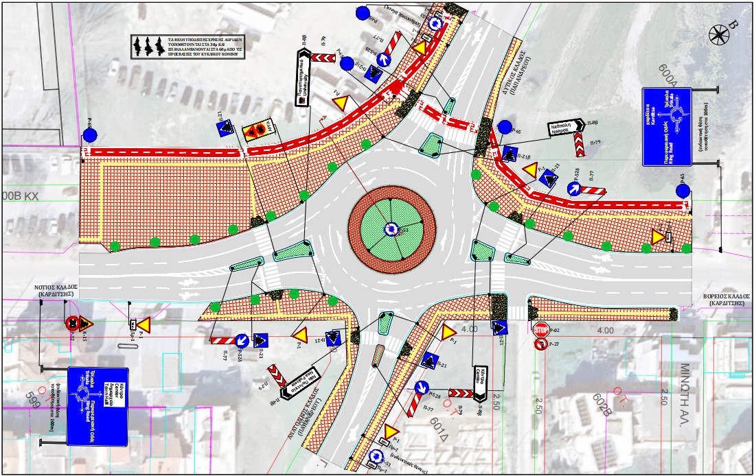 • Καρδίτσης – Παπανδρέου: Ο σηματοδοτούμενος κόμβος στη συμβολή των συγκεκριμένων οδών μετατρέπεται σε κυκλικό κόμβο, ο οποίος διευθετεί τις πραγματοποιούμενες κινήσεις των οχημάτων με μικρότερες καθυστερήσεις, βελτιώνει την οδική ασφάλεια στον κόμβο καθώς μειώνεται δραστικά η ταχύτητα κίνησης των οχημάτων και προστατεύονται οι κινήσεις των πεζών (μέσω σηματοδοτούμενων πεζοδιαβάσεων) και συντελεί στην αισθητική αναβάθμιση της περιοχής.