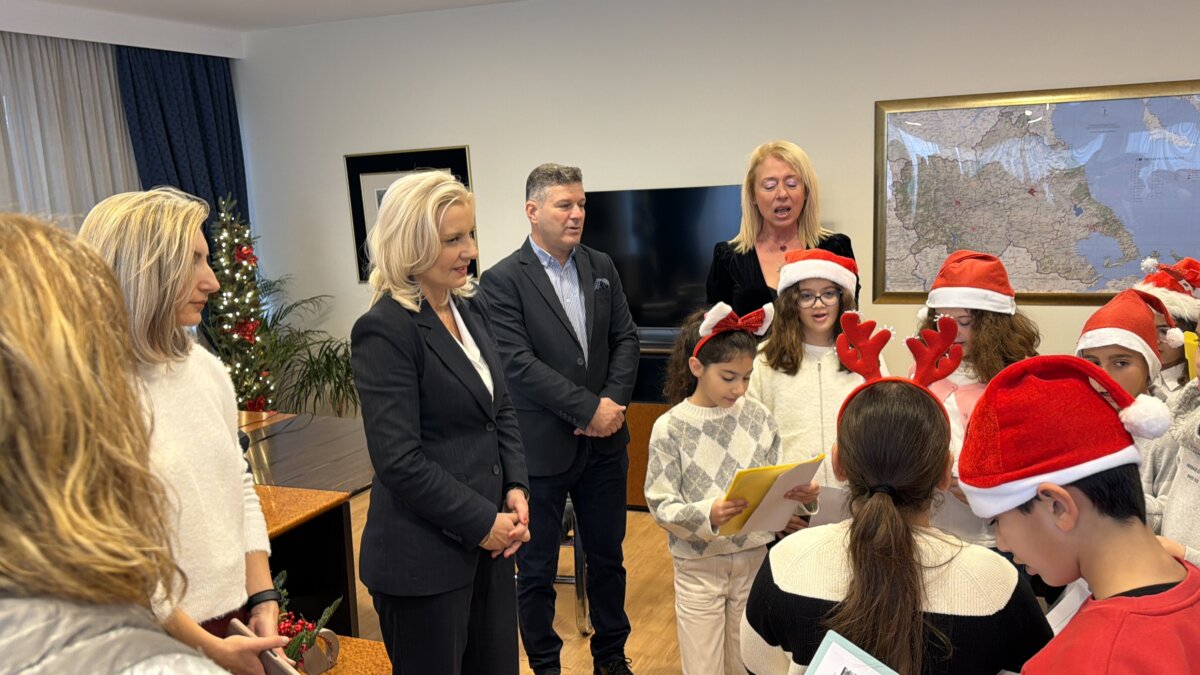 Συγκίνηση, χαμόγελα και παιδικές φωνές πλημμύρισαν το γραφείο της Γενικής Γραμματέως της Αποκεντρωμένης Διοίκησης Θεσσαλίας – Στερεάς Ελλάδας, κας Ρένας Καραλαριώτου, κατά την επίσκεψη μαθητών σχολείων της Λάρισας που έφτασαν για να ψάλουν τα χριστουγεννιάτικα κάλαντα και να μεταφέρουν το αυθεντικό μήνυμα των Χριστουγέννων.