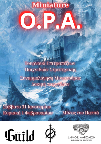 Ένα διήμερο αφιερωμένο στο παιχνίδι με μινιατούρες, το Miniature O.P.A. 2026 έρχεται για πρώτη χρονιά στη Λάρισα, το Σάββατο 31 Ιανουαρίου και την Κυριακή 1 Φεβρουαρίου 2026, στον Μύλο του Παππά, με ελεύθερη είσοδο και συμμετοχή στα παιχνίδια, από τον Ζήση Αποστολίδη και το “The Guild”, σε συνεργασία με την Αντιδημαρχία Πολιτισμού του Δήμου Λαρισαίων.