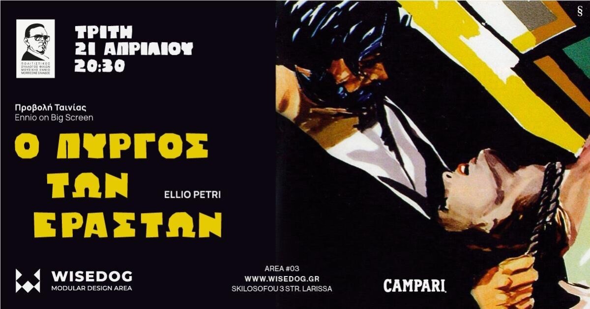 Η ομάδα Ennio on Big Screen, σε συνεργασία με τον Σύλλογο Φίλων Ennio Morricone, παρουσιάζει για πρώτη φορά στην Ελλάδα την ταινία «Ο Πύργος των Εραστών» (1968) σε σκηνοθεσία Έλιο Πέτρι και με πρωταγωνιστές τους Φράνκο Νέρο και Βανέσα Ρέντγκρέιβ.