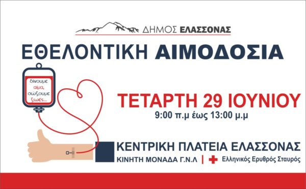 Εθελοντική αιμοδοσία για την ενίσχυση της τράπεζας αίματος του Δήμου διοργανώνει την Τετάρτη 29 Ιουνίου 2022 ο Δήμος Ελασσόνας από τις 9:00 π.μ. έως τις 13:00 μ.μ. στον χώρο του ΚΑΠΗ στην […]